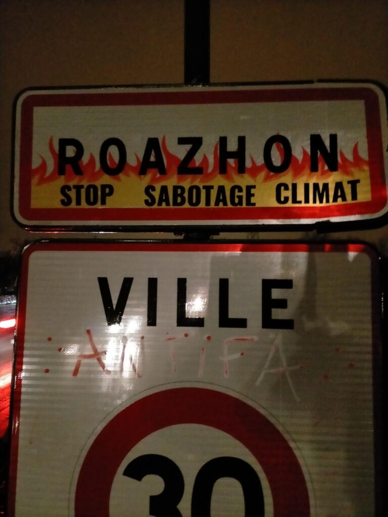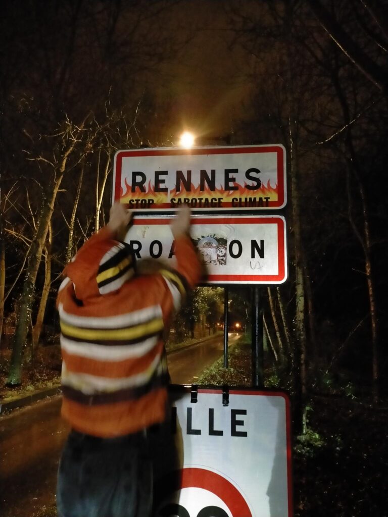 À Rennes, des flammes sur les panneaux pour dénoncer le sabotage du climat